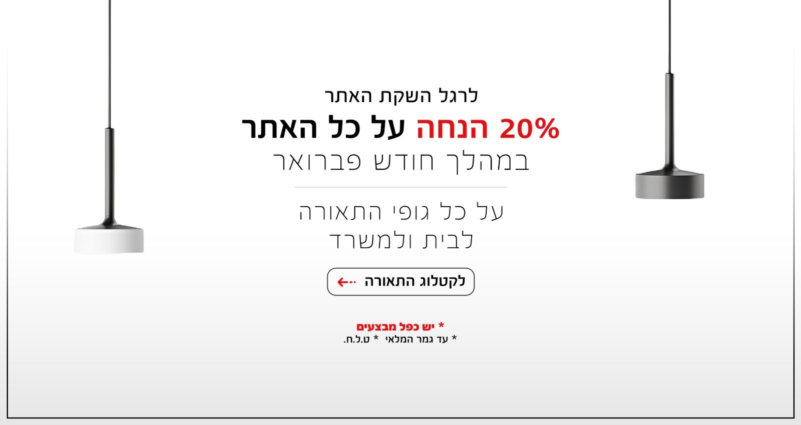 חנות תאורה בעלת אולם התצוגה הגדול בירושלים (כ-1000 מ"ר) תמצאו מבחר גדול של גופי תאורה בעיצובים חדשניים ובטכנולוגיה המתקדמת ביותר. לשירותכם צוות יועצי תאורה מיומן, אשר ישמחו לענות לכל שאלה.